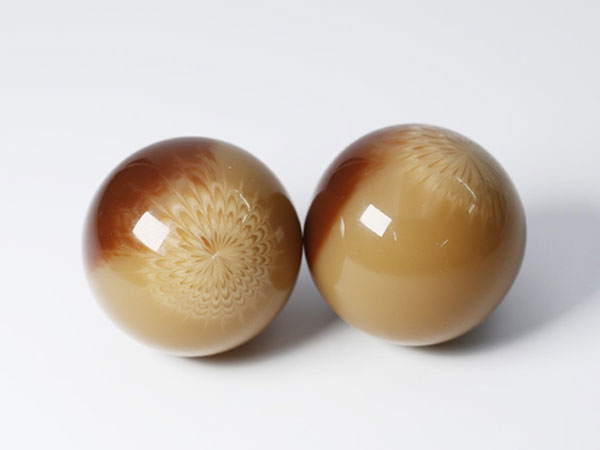 保健球,是用金屬制成的兩個(gè)小圓球,大小型號(hào)不同,重量也有異,據(jù)說此種成對(duì)的保健球起源于北方。大約500多年前,也就是明代的嘉靖年間,河北省的保定府就已經(jīng)有制作健身球的紅爐作坊。